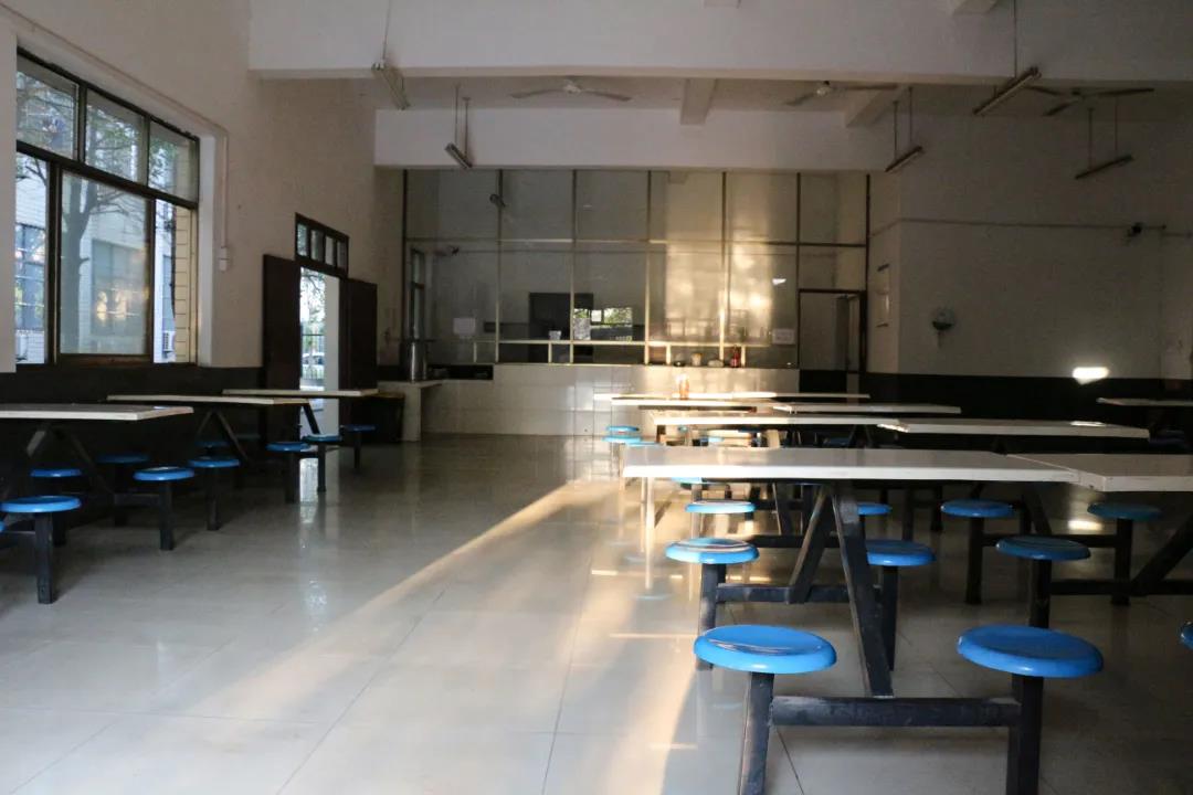 “午飯后的食堂,食堂與宿舍之間”