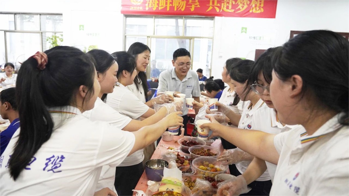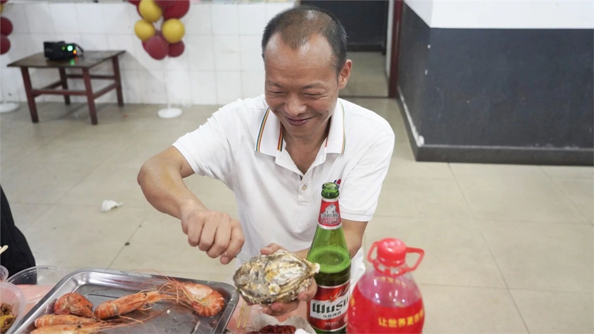 踏入餐廳,映入眼簾的是一盤盤美味的龍蝦、生蠔和飄香四溢的熱鹵、精致可口的小菜,還有清熱解渴的西瓜、冰鎮涼茶等。大家歡聚員工餐廳,圍桌而坐,歡聲笑語不斷,鮮嫩可口的海鮮在味蕾上綻放,一次次舉杯飽含喜樂、一聲聲歡笑傳遞幸福。